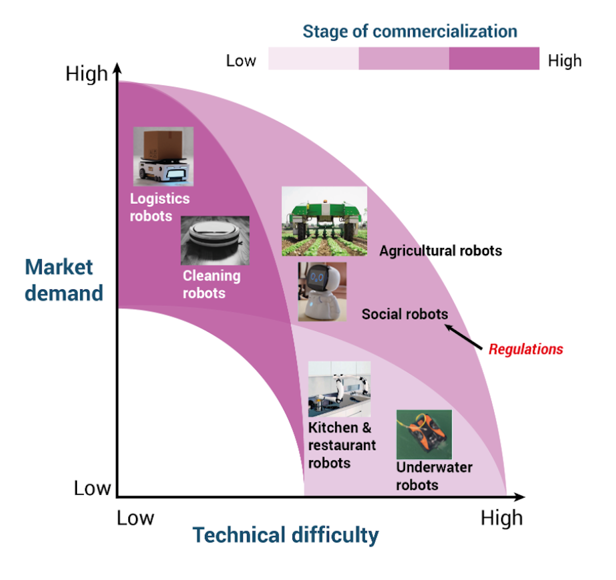 Robots categorized by their technical difficulty, market demand, and stage of commercialization. Source: IDTechEx